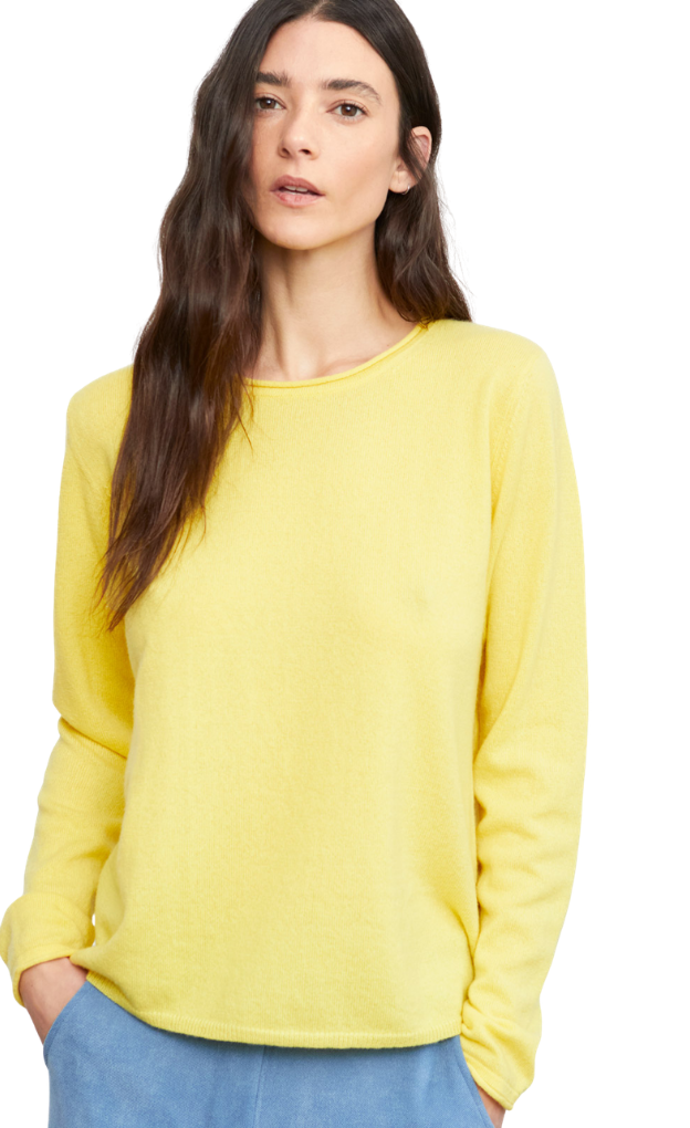 - Sunshine yellow rounded-neck cashmere sweater