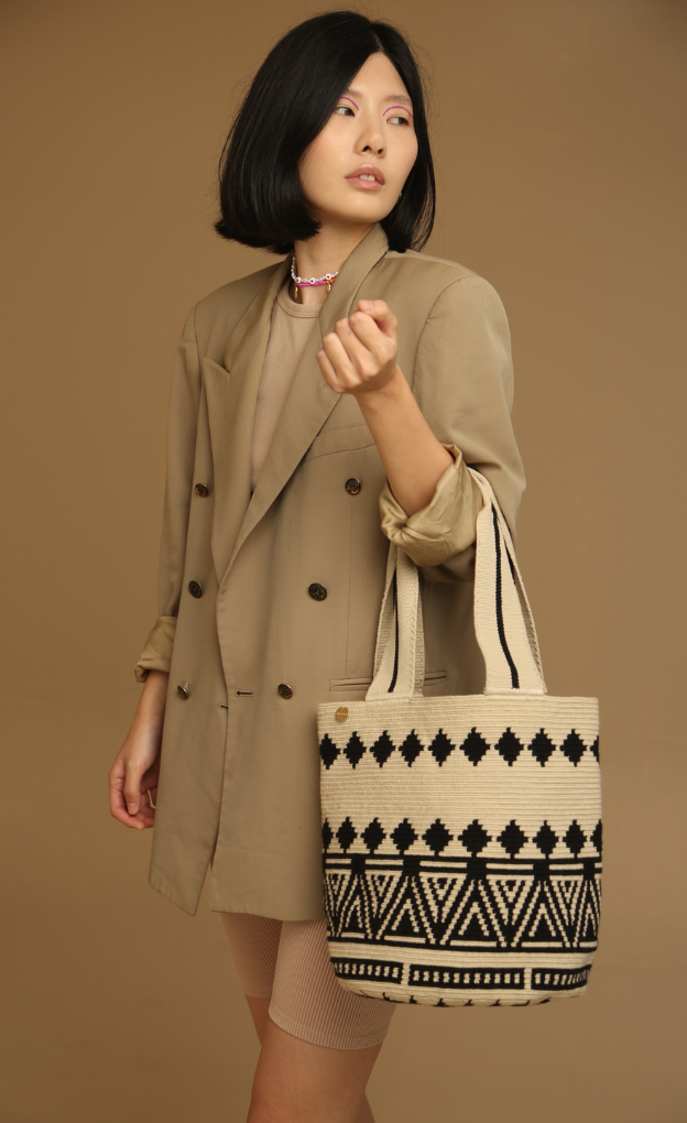 The collection features two distinctive styles to suit different needs. The Baguette Bag is small yet surprisingly spacious, perfectly fitting your phone, card holder, makeup essentials, and small personal items. It's the first-ever Wayuu interpretation of the iconic baguette silhouette, offering an on-trend style with versatile wearing options. The Shopper Bag offers large capacity for daily essentials, with a sturdy base and reinforced handles built for everyday durability. Its classic tote silhouette showcases beautiful Wayuu patterns whilst providing comfortable shoulder carry, making it an ethical alternative to mass-produced totes.