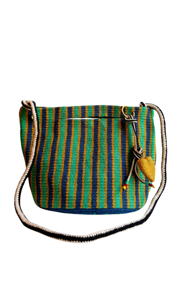 The making of each bag is a careful, deliberate process. Artisans begin by selecting strong, colourful thread sourced from Colombian manufacturers. Designs are created entirely from memory and cultural knowledge, without written patterns. Using a special crochet hook, they work stitch by stitch in continuous spirals. The base, sides, and straps are expertly joined using traditional methods, and each finished bag undergoes thorough final checks to ensure perfection.