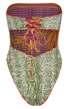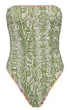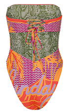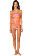 Think about your favorite deep V one-piece and then go a little deeper in the Aloha one-piece with an unforgettable palm print. This glamorous reversible one-piece has adjustable straps and that irresistible center front V wire.