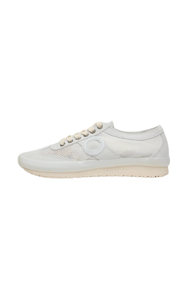 The uppers of these sneakers are crafted from mesh fabric made with recycled polyester and brushed suede and a flexible, natural rubber sole for easy mobility.