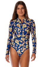 Ride the waves of style with our Cardie one-piece surfsuit. This sporty one-piece is designed for the water-loving Maaji girl who effortlessly combines fashion and functionality. With contrast piping, a functional zip, and a reversible print, this might become your go-to piece for all things watersports.