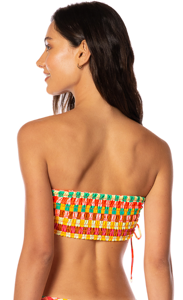 Tube top fans, rejoice! This bandeau bikini top is ready to be your new luckiest charm. Enjoy the luxe embroidered cherries, details, and reversible print!