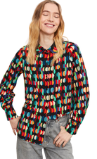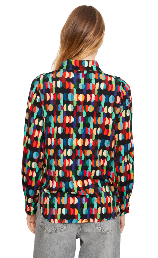 - Long-sleeve shirt in a multicolour geometric print on a black ground