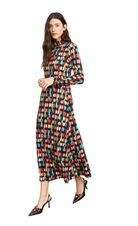 - Ankle-length maxi dress in a multicolour geometric print on a black ground