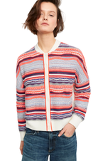 - Cream and multicolour textured stripe knit cardigan