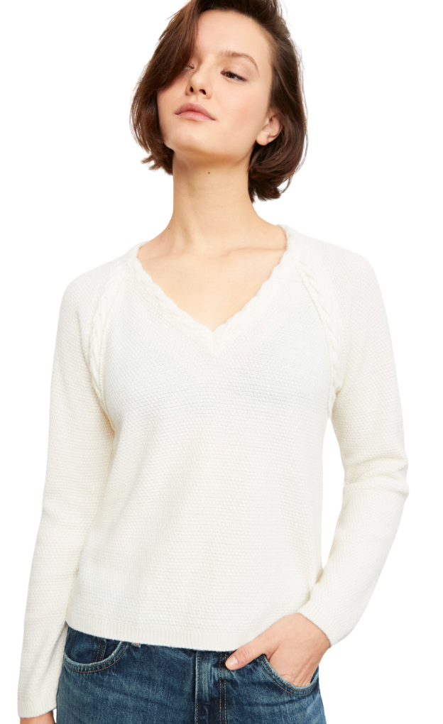 - Long-sleeve V-neck sweater in cream/ivory