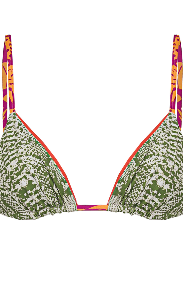 Balmy, where have you been all our lives? The perfect sliding triangle bikini top for summer vacations. With adjustable straps that tie at the neck and back and its low coverage, this bikini top is a must for every girl!