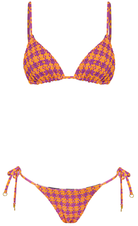 Here's the perfect sliding triangle bikini top for summer vacations. With adjustable straps that tie at the neck and back and its low coverage, this perfect bikini top is a must for every girl.