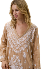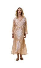 The Goa has a hand embroidered look and is a oneseason must-have for the beach. This contemporary take on the classic kaftan features a deep V-neckline and side splits for long walks or lounging.