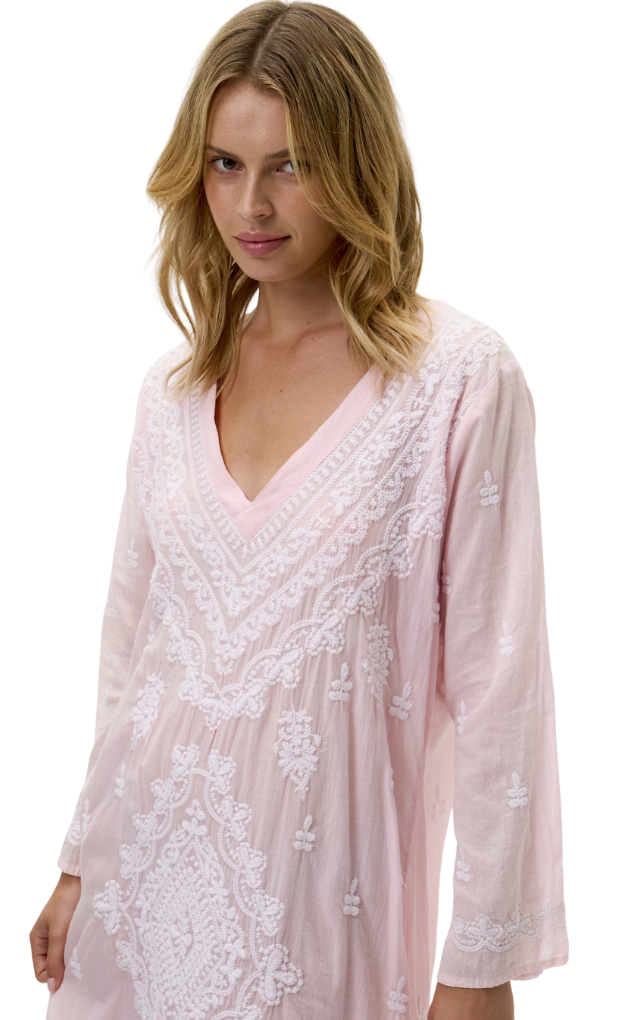 The Goa has a hand embroidered look and is a oneseason must-have for the beach. This contemporary take on the classic kaftan features a deep V-neckline and side splits for long walks or lounging.