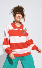 Elevated athleisure. Pack the boring greys away and pull out this bright sweater of joy. Just look. atthe beautiful sequin detail. You know the team at POM Amsterdam would never let a piece leave their design table without adding their signature playful touch.