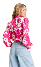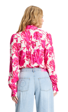 • Pink blouse with leaf print