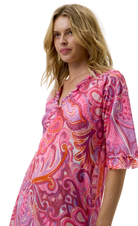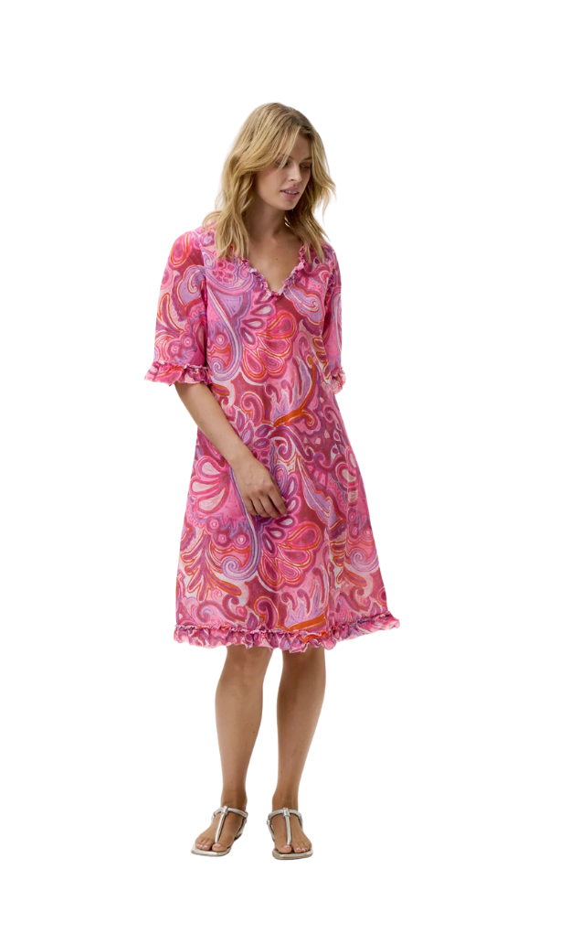 The Middi Indi is our Oneseason showstopper. The bias-cut dress, flowing fit, jumbo frills and accentuated sleeves make it effortless by day and a centrepiece by night.