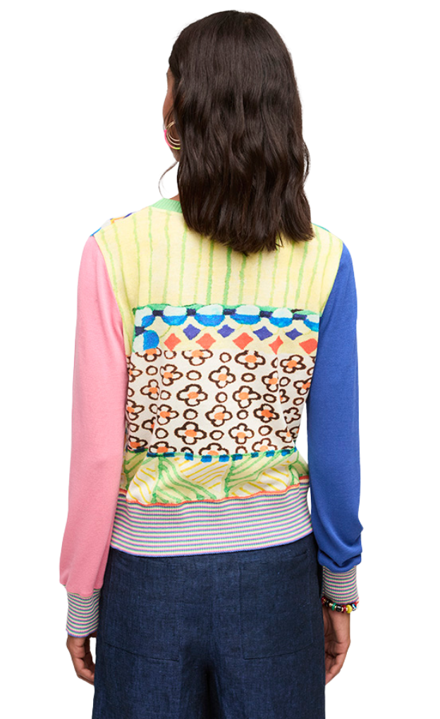 The cotton-bamboo blend ensures this cardigan is not only visually striking but also environmentally conscious, with bamboo's natural breathability and temperature regulation making it ideal for transitional weather while maintaining the vibrant colors and intricate patterns that define the Colourful Splash collection.