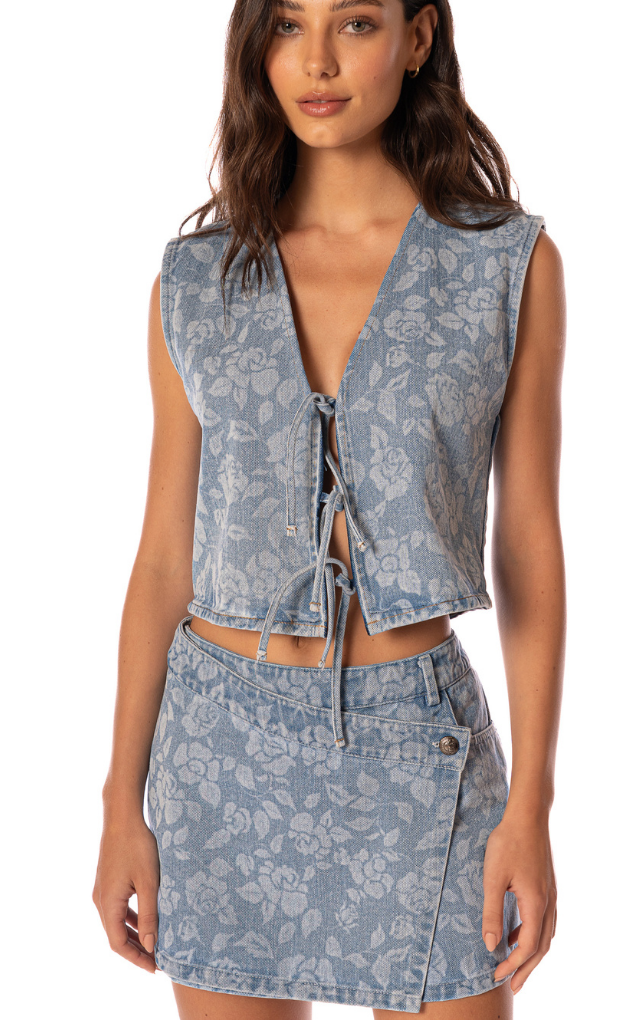 For a relaxed beach coverup, the Açai vest is the perfect choice. With special crocheted lace, pockets, and cool striped cuffs, the comfy cotton blend Açai vest serves up looks all day and night and looks great as a set with the School skirt!