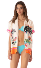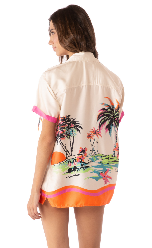 Grab your drinks and meet us by the pool in your vacay-worthy Melissa shirt. The Melissa can obviously be buttoned, but the most maajical look is open, over one of our bikinis. Ah, so refreshing.