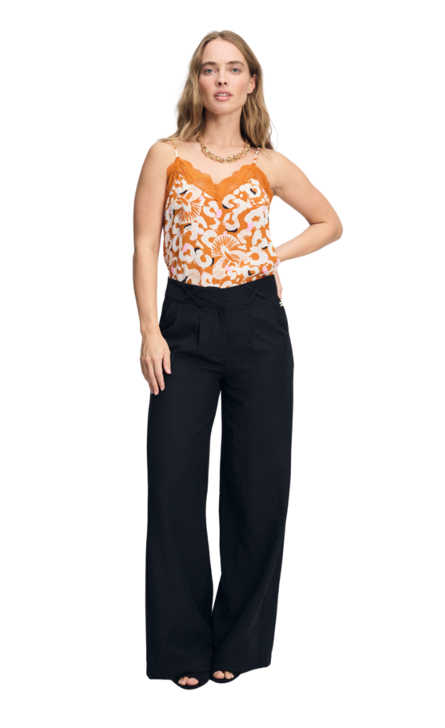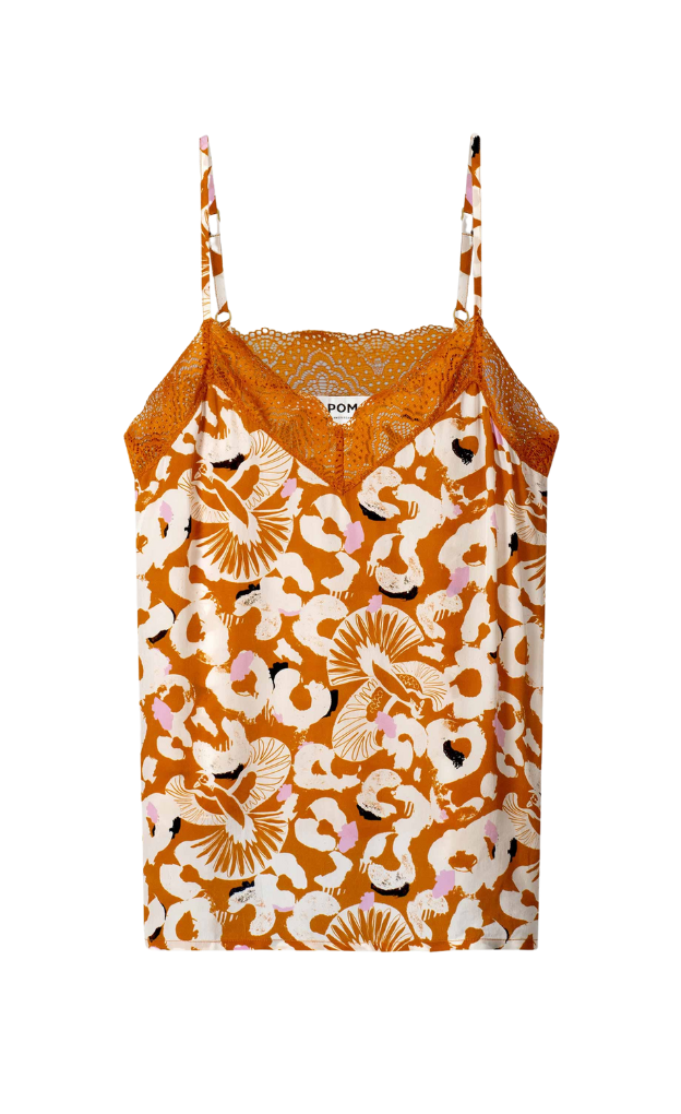 This orange top is made of beautiful woven viscose quality with a sheen. The camisole has adjustable shoulder straps.