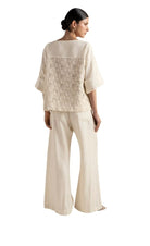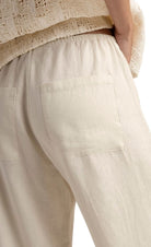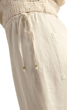 Wide Pants in 100% linen, cream color, adjustable waist straps for a customizable fit.
