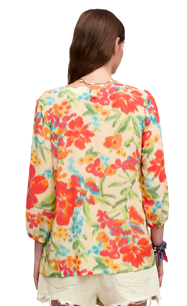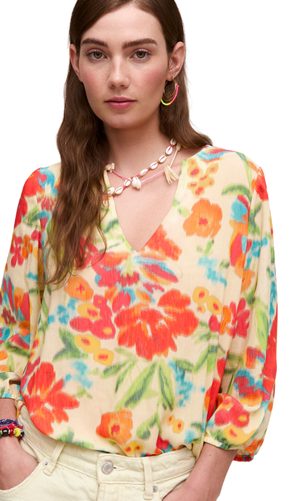 This beautifully relaxed blouse features a flattering V-neckline and three-quarter sleeves that provide the perfect balance of coverage and comfort, while the flowing silhouette creates an elegant drape that flatters every figure.