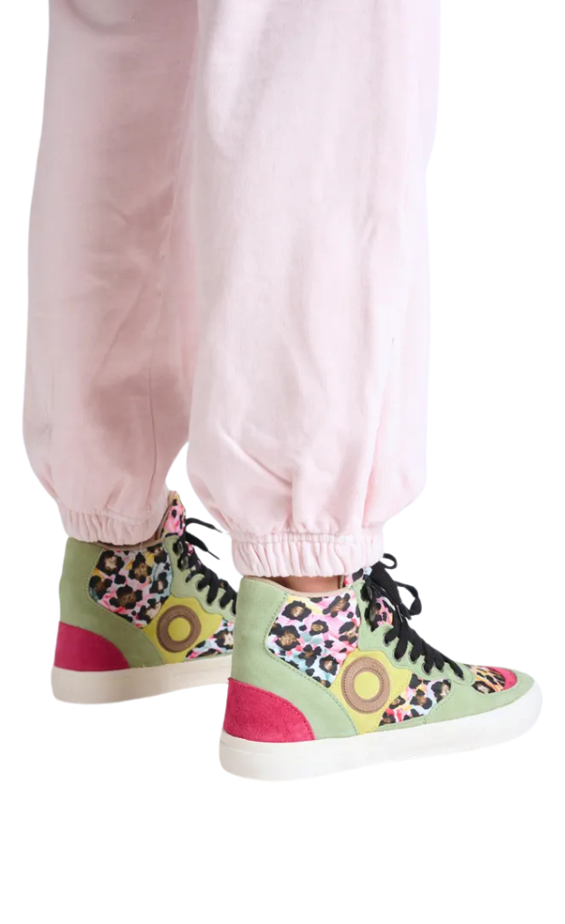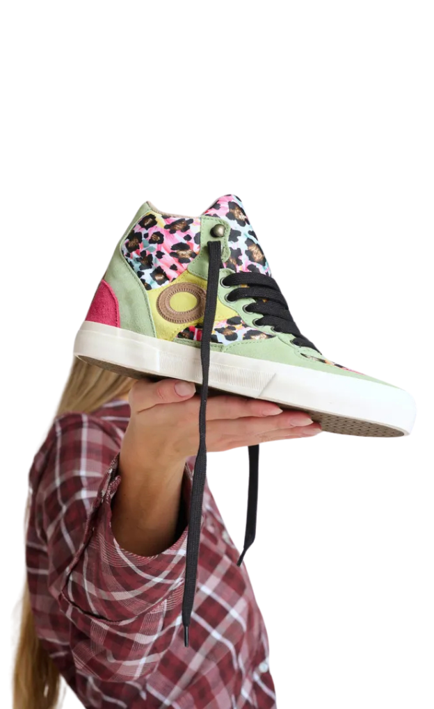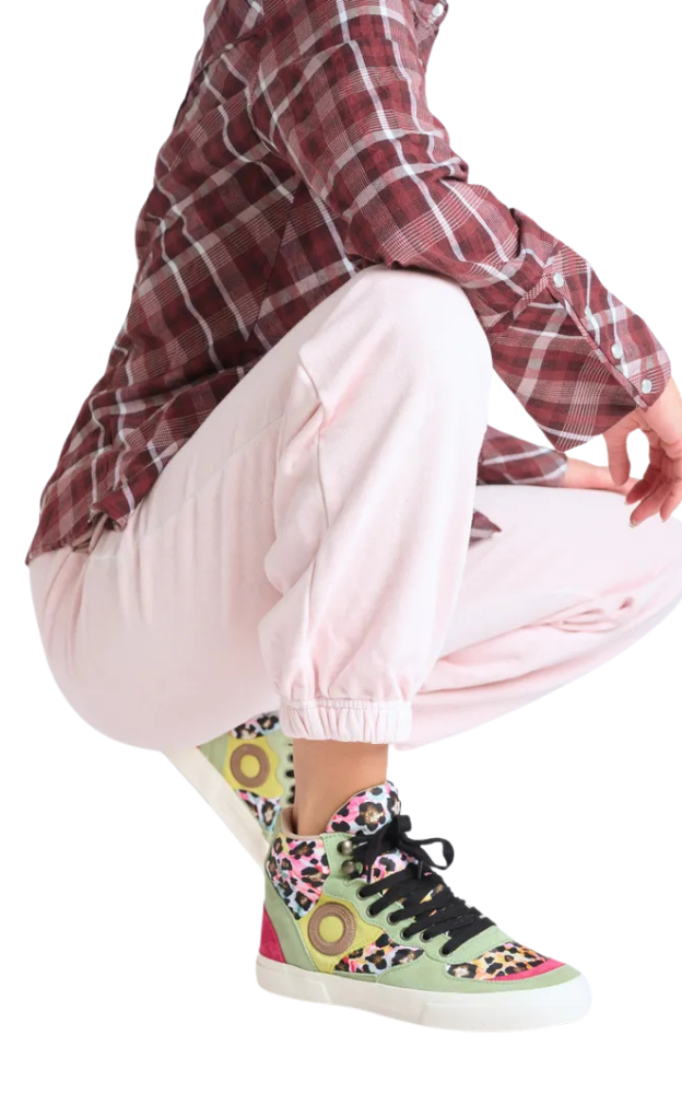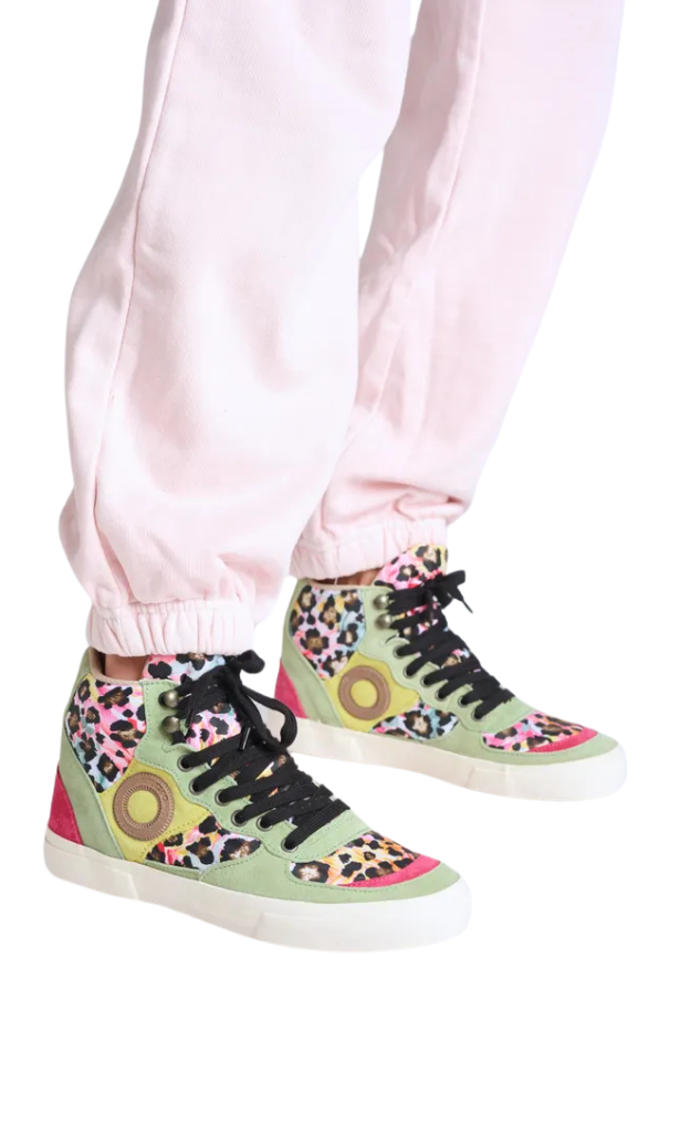 She's a colourful one! Multicolour leopard print fabric in the uppers compliments the suede accents.