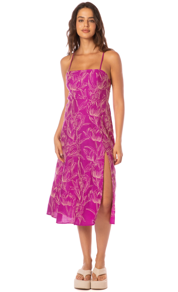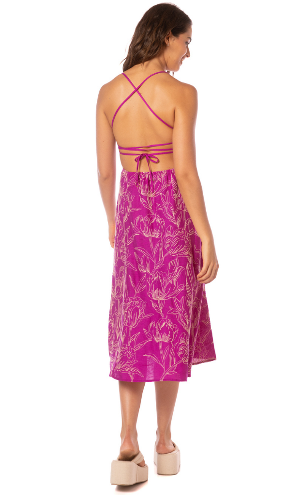 The Remi midi dress in Violet Foliage stitching is for our romantic girlies out there. Show off your bronzed shoulders and neckline with the Remi's square cut, and enjoy the sexy lace-up back along with Maaji's signature comfortable and flattering fit, for a timeless and feminine look.