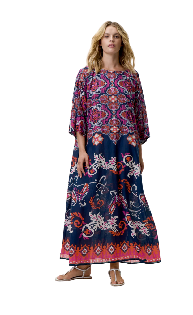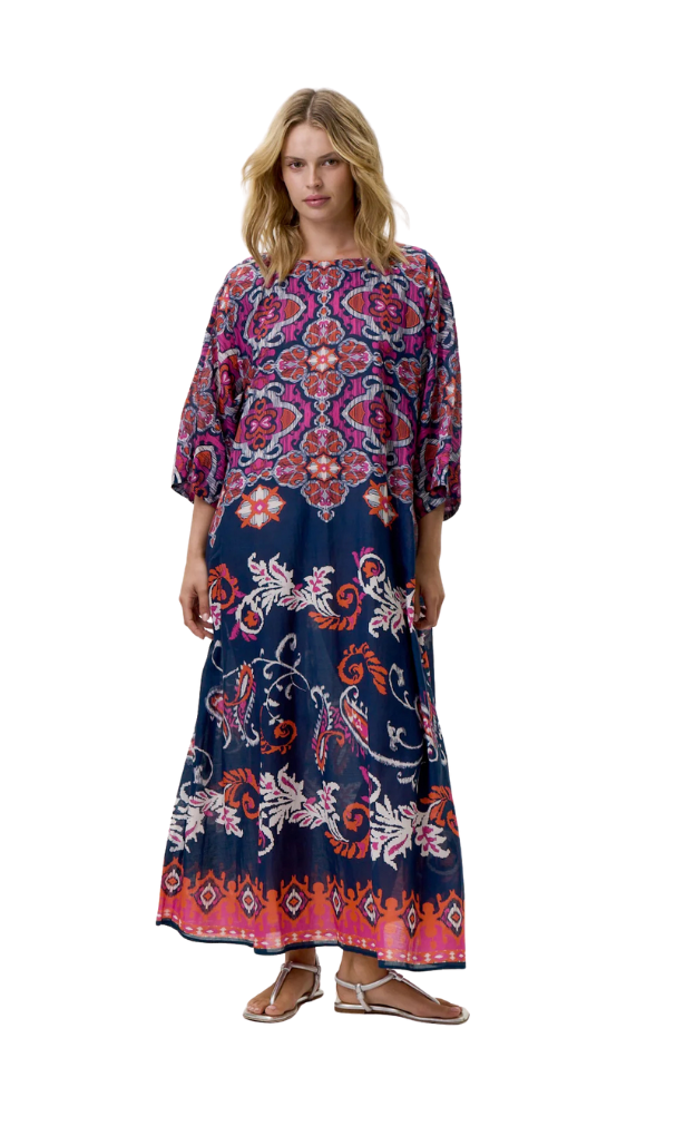 The Jackie is a floaty silhouette designed for easy summer days. Featuring a soft scoop neckline, ¾ sleeves, and a flared hem, it offers a lightweight feel and effortless drape, the perfect cover-up for holiday escapes.