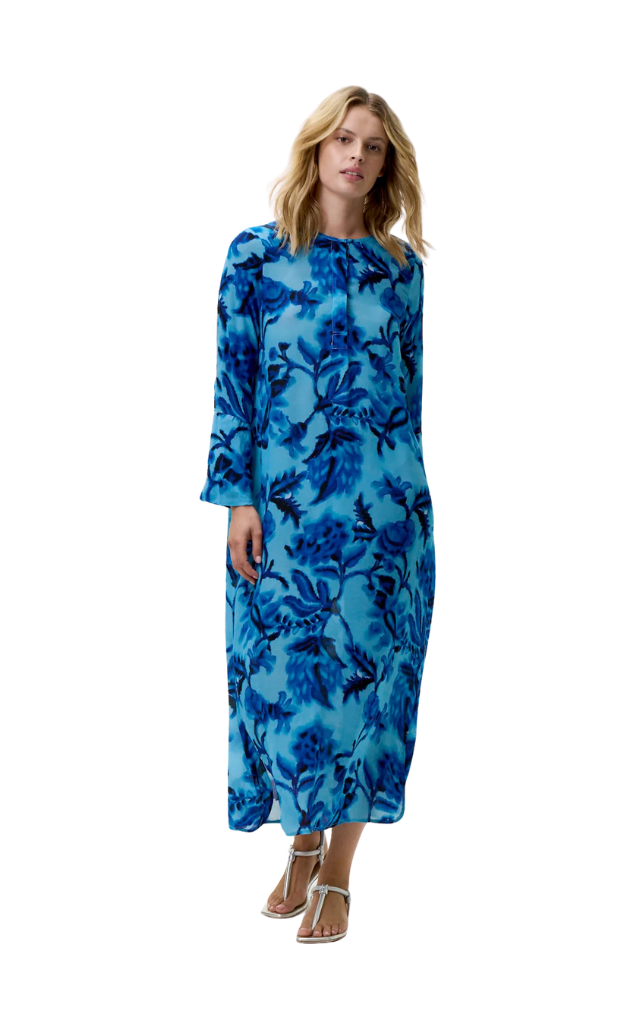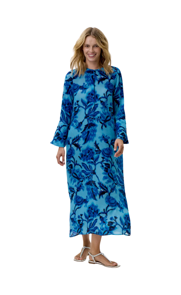 Crafted from breathable viscose, this maxi features a soft round neckline and fluted cuffs.