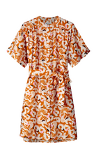 Dress with short sleeves and bow belt at waist. In a unique handmade print. The dress is made of 84% LENZING™ ECOVERO™ and therefore 'more sustainable'.